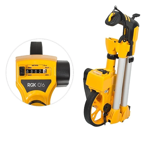 Колесо диаметром 160 мм позволяет выполнять измерения одинаково точно, как на ровных поверхностях, так и на бугристых, таких как газон или грунт. Дорожное колесо RGK Q16 с шиной из полиуретанового покрытия обеспечивает высокую точность результатов на таких поверхностях, как асфальт, бетон или брусчатка.