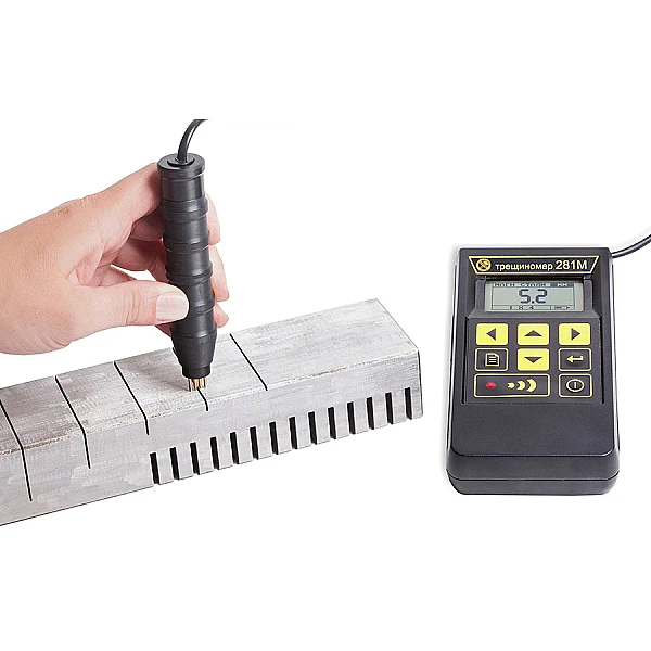 Трещиномер 281М - это высокоточный портативный прибор для измерения глубины трещин, выходящих на поверхность изделий из ферромагнитных металлов и сплавов (в т.ч. нержавейки, дюраля), предварительно обнаруженных каким-либо другим методом.